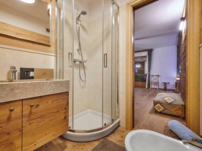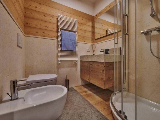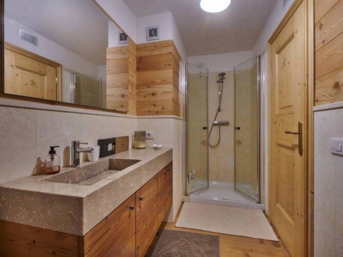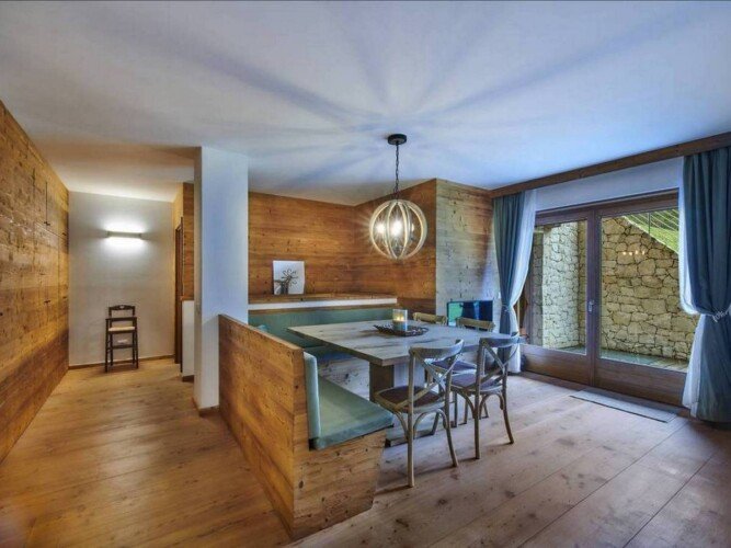 An apartment entirely furnished with care and craftsmanship, equipped with 3 bedrooms 3 bathrooms a spacious living room and icing on the cake a beautiful outdoor patio where you can admire the beauty of the Dolomites listening to the sound of the surrounding nature.