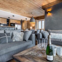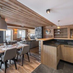 There are two separate balconies leading from the living area, offering beautiful views of the village of Val d Isere and Val d Isere s famous ski slopes including the famous Face . Inside the layout is comfortable yet practical, with seating centred around the fireplace and large TV for relaxing in the evenings. The kitchen with breakfast bar is generously equipped and a laundry room with a washing machine and tumble drier makes the chalet ideal for self-catered holidays.