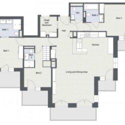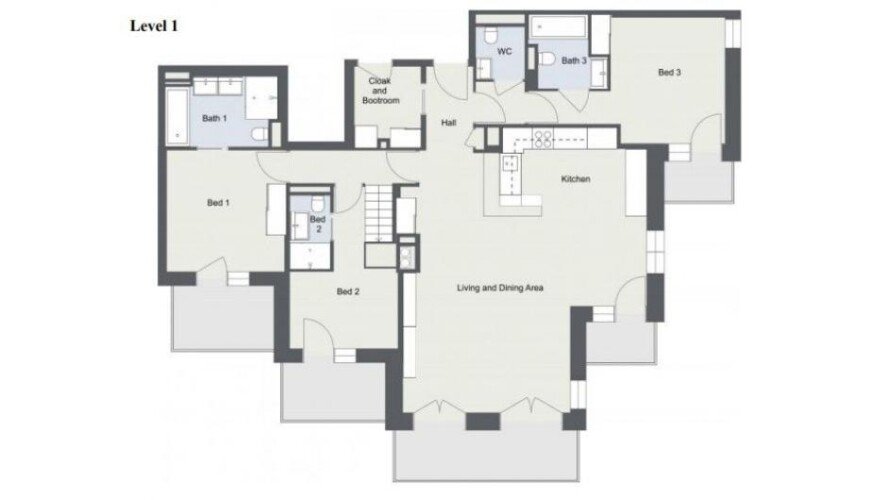 1 x Master double bedroom with en-suite bathroom with separate shower, WC and private balcony access.
