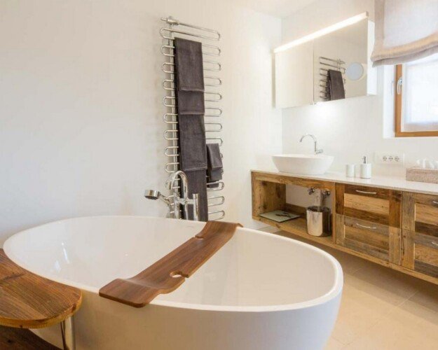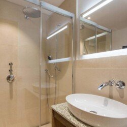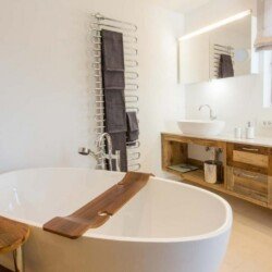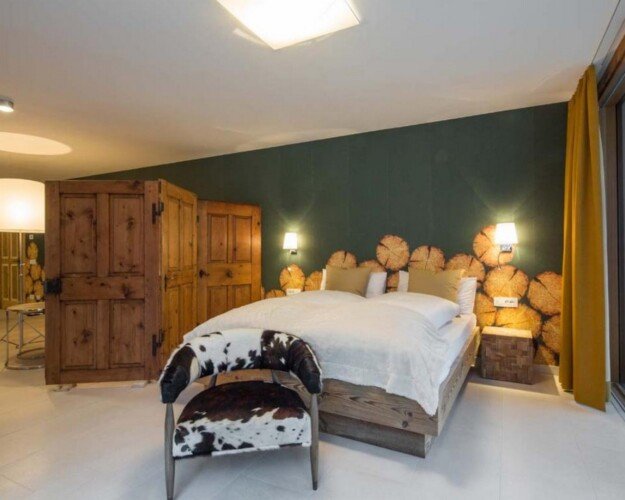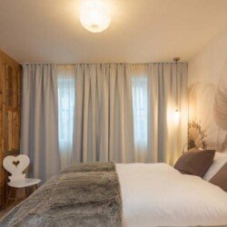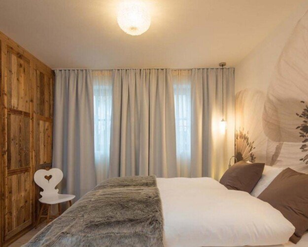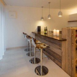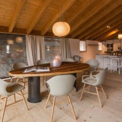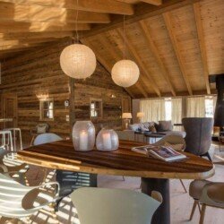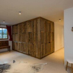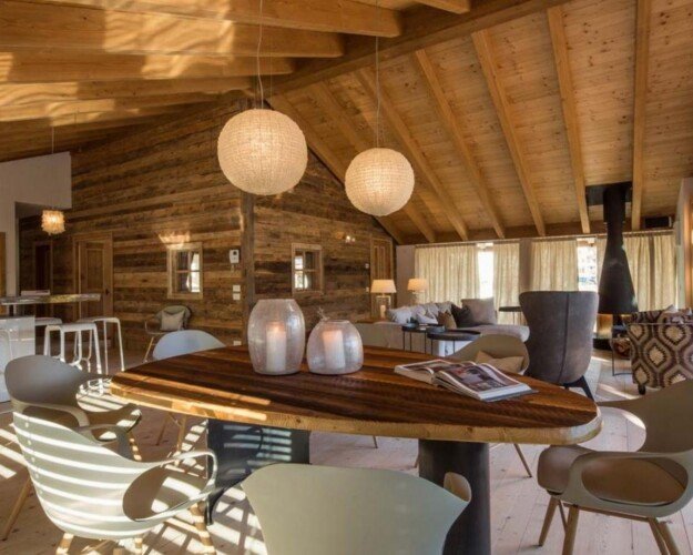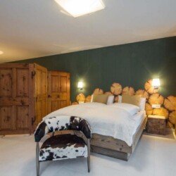Meals can be prepared in the well-equipped kitchen and enjoyed around the locally designed dining table which seats ten. A four-seater bar provides the perfect spot for enjoying an apres-ski beverage or two. the Chalet is home to four luxurious en-suite double bedrooms, plus another double bed area with bathroom, screened from the rest of the lower level floor with an antique wooden screen.