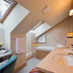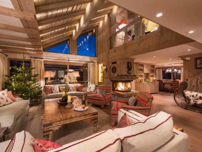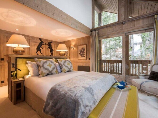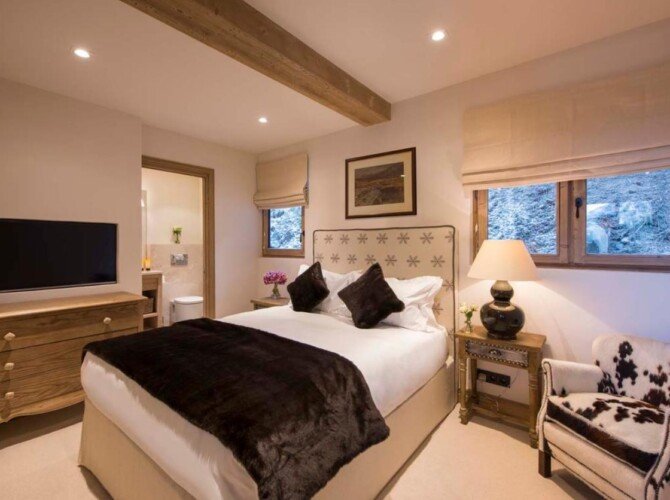 The Chalet is home to seven individually designed and furnished bedrooms. On the third floor is a master suite with private balcony and TV. A family suite with one twin/double bedroom and one bunk bedroom which share a bathroom is also located on this level. An open plan mezzanine with library overlooks the main living area.