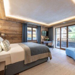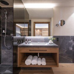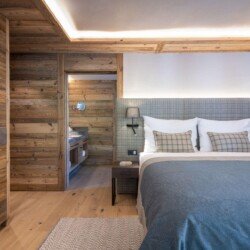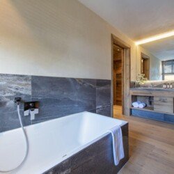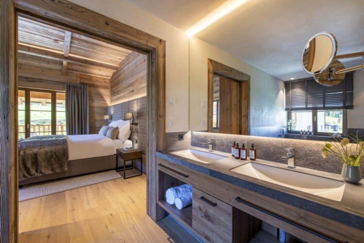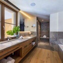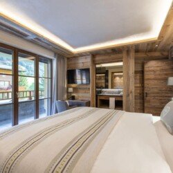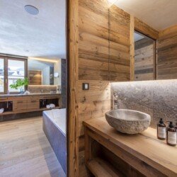 Chalech will accommodate 8 guests in total, spread across its four en-suite bedrooms. The bedrooms have a classic Alpine charm to them, with sleek wood, stylish furnishings and lavish en-suite facilities giving the chambers a luxury quality. Every bedroom can directly access a balcony, and three of the four double rooms can also be taken as twin for added convenience. The Master double bedroom on the ground floor is fixed, but does include the sauna in its en-suite bathroom.