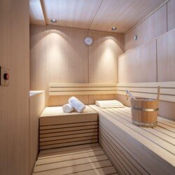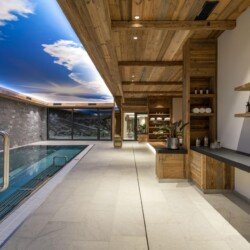 In the bathroom of the downstairs Master bedroom, there is a sauna for guests to relax in and soothe any tired ski legs. For further spa therapies, guests of Chalech will have use of the shared facilities of the Chalech building. These include a delightful relaxation area and swimming pool, gym facilities for fitness fanatics, and a tepidarium for a slightly cooler wellness experience than your in-chalet sauna.
