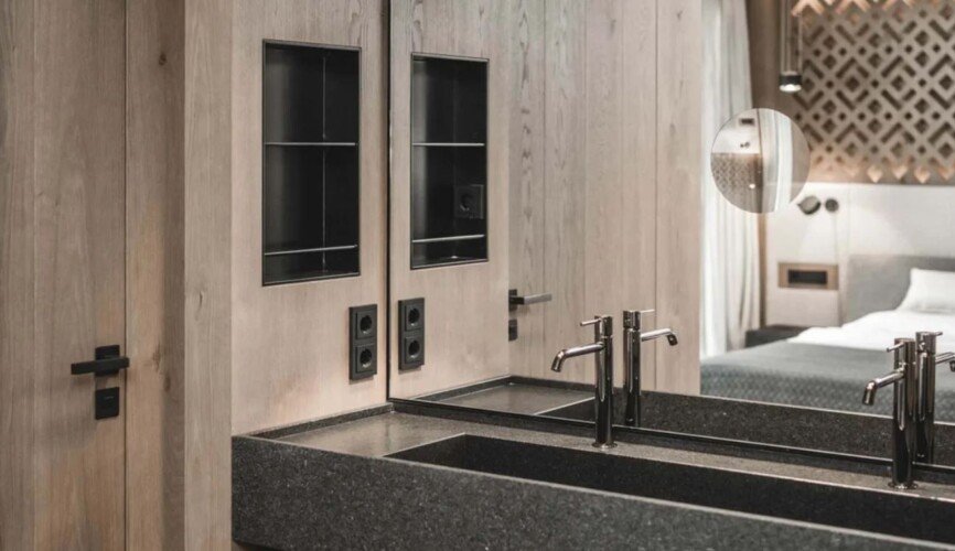 The wellness and spa areas inside are second to none, boasting a sauna, steam room, Jacuzzi, fitness and yoga area and a separate massage room. This isn t just another spa. Centred around a large comfort sofa, the wooden decor framed by the subtle colours and black walls give an almost futuristic Japanese feel to the zen zone. Unique relaxation showers will help you soothe your tired muscles after a day out exploring nature. The moment you step into this zone, prepare to feel entirely at one with yourself and your surroundings.