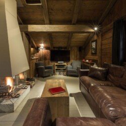Downstairs, there is the added benefit of a separate TV lounge, where kids can settle down with a preferred film. Next door, a sauna gives a first spot to relax any achy legs after a long ski day. Alternatively, outdoors on the chalet’s terrace, you will also find a hot tub, where you can soak into the warming bubbles as you appreciate the beautiful mountain backdrop. With plenty of outdoor space, kids can also enjoy a game in the snow or have a snowman building competition.