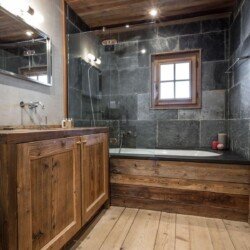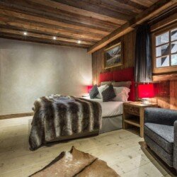 Chalet Baby Bear offers three bedrooms, split over the two lower levels of the chalet. The first bedroom, on the lowest floor, offers a private separate shower room. The other two bedrooms on the ground floor are en-suites, each with a bathtub and one with terrace access. All of the bedrooms have been finished in a similar style, authentically alpine and creating a welcome sense of comfort.