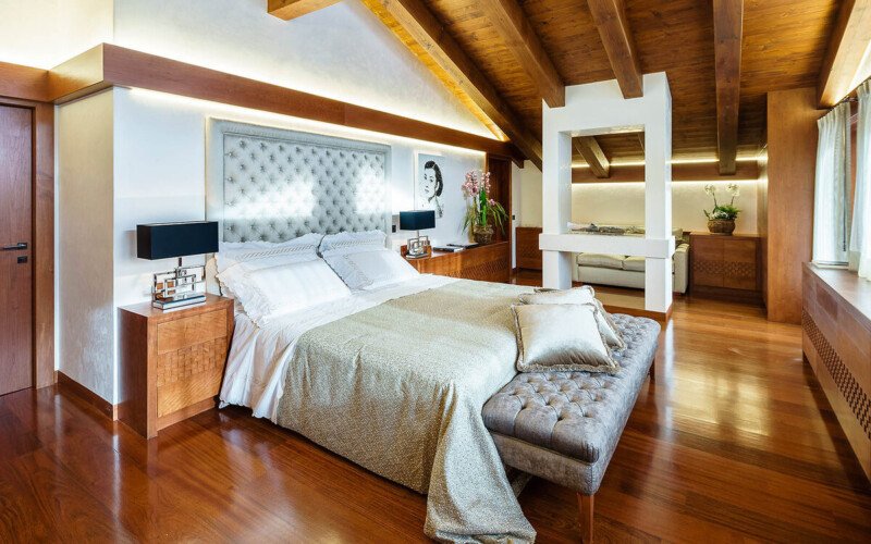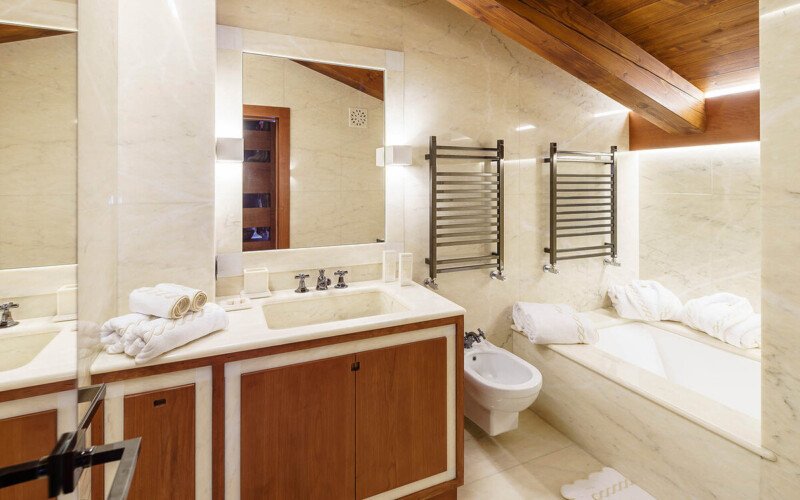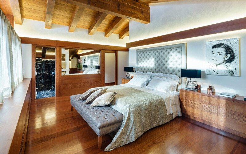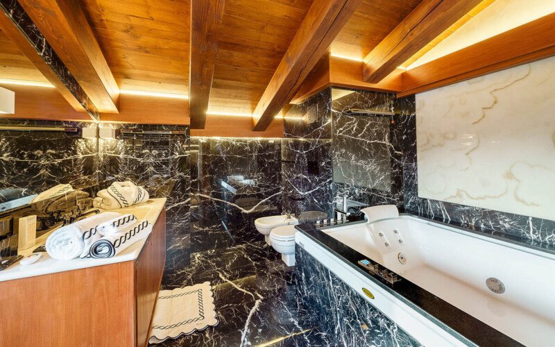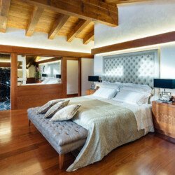 Set over four floors, the chalet offers spacious living areas where everyone can really relax. An entire floor is dedicated to the lounge area, which is equipped with the latest technology to make it a wonderful entertainment area. A roaring open fire and bar complete the picture. Comfy sofas and a cosy dining area provide plenty of space for everyone to relax in the evenings with a glass of wine from the chalet’s own cellar. And you don’t have to lift a finger while you’re here; the butler is always on hand to fetch anything you need.
