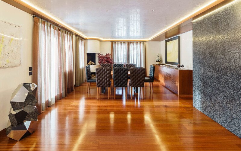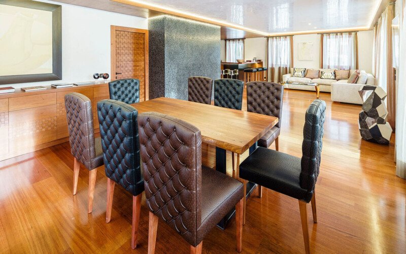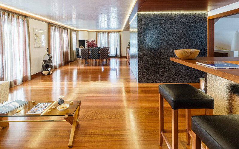 As befits a chalet in this exclusive and glamorous area, everything you could wish for has been provided here. Swim a few lengths in the pool or spend a few hours in the gym to work up an appetite for your gourmet dinner, then relax in the spa. The spa area features a massage room as well as a sauna, jacuzzi and “emotional” shower. You are guaranteed to return home completely relaxed and refreshed. In the afternoons after an energetic morning on the slopes, there is nothing better than slumping together in front of a film. The private cinema is equipped with luxurious chaise longue style sofas for your ultimate relaxation.