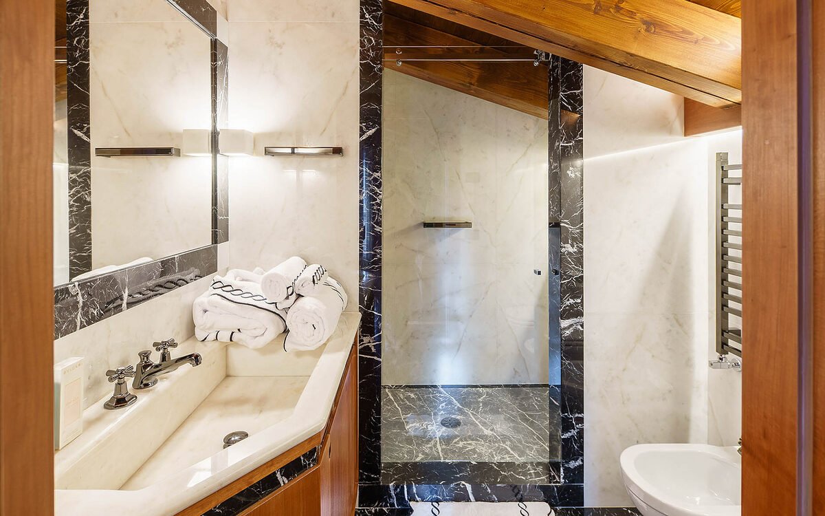 Set over four floors, the chalet offers spacious living areas where everyone can really relax. An entire floor is dedicated to the lounge area, which is equipped with the latest technology to make it a wonderful entertainment area. A roaring open fire and bar complete the picture. Comfy sofas and a cosy dining area provide plenty of space for everyone to relax in the evenings with a glass of wine from the chalet’s own cellar. And you don’t have to lift a finger while you’re here; the butler is always on hand to fetch anything you need.