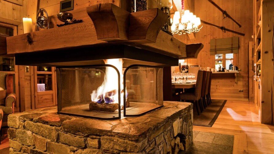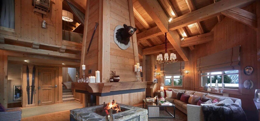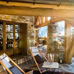 The beating heart of Chalet Grizzli is the living room, dominated by a majestic central fireplace, a true work of art, framed by a double-height cathedral ceiling. The terrace adjoining the living room offers a panoramic view of the mountains, bathed in glorious light.