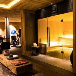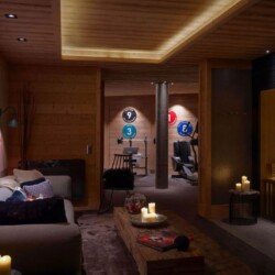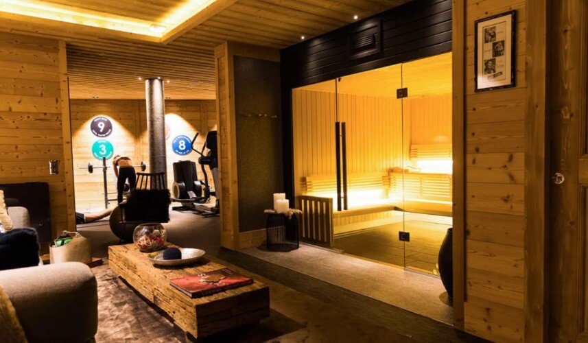 The chalet s five spacious bedrooms, each tastefully decorated, are equipped with private bathrooms and satellite HDTVs for optimum comfort. For sports enthusiasts, there is a fitness room with a treadmill, rowing machine, bike and HD TV.