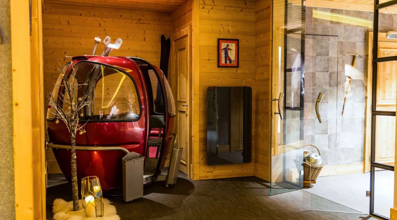 In the basement, there is a heated ski room with a boot dryer, a sauna/hammam and a table tennis area. On the ground floor, there is a massage room and three bedrooms with direct access to the terrace and nordic bath. These include a master suite with double bed, fireplace, desk and walk-in wardrobe, and two bedrooms with double or twin beds, each with en-suite facilities.