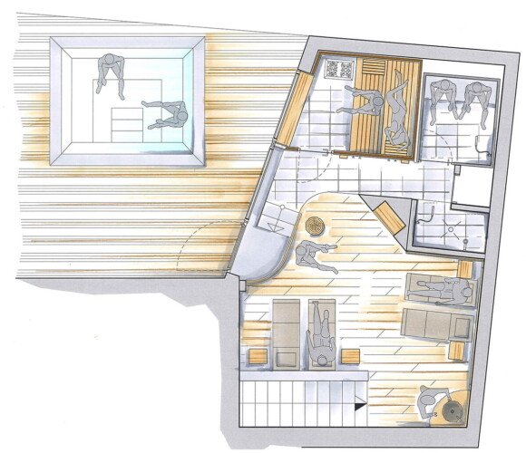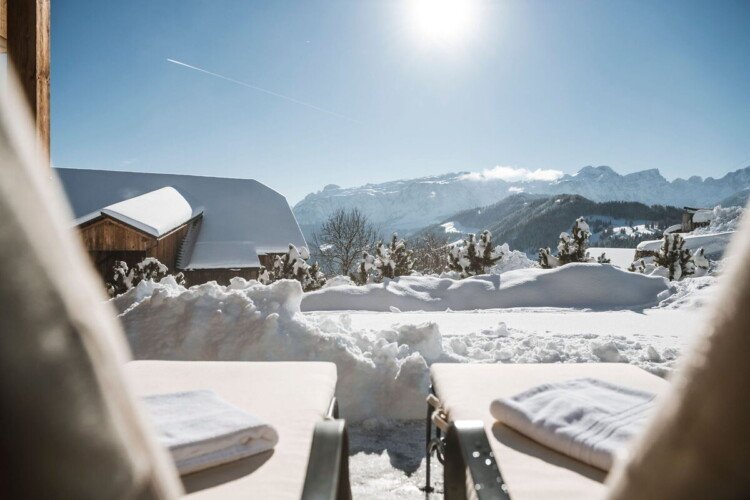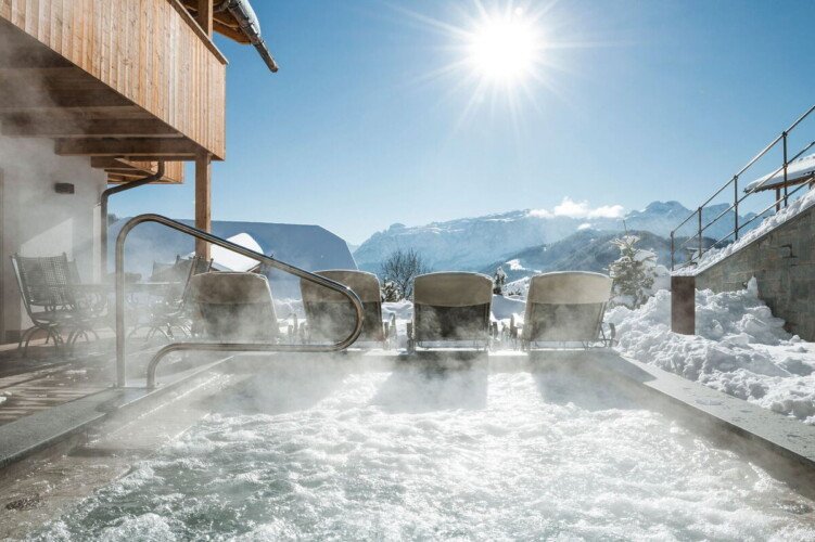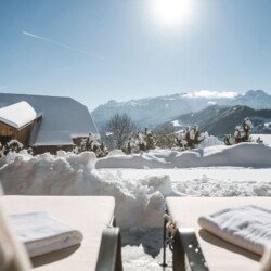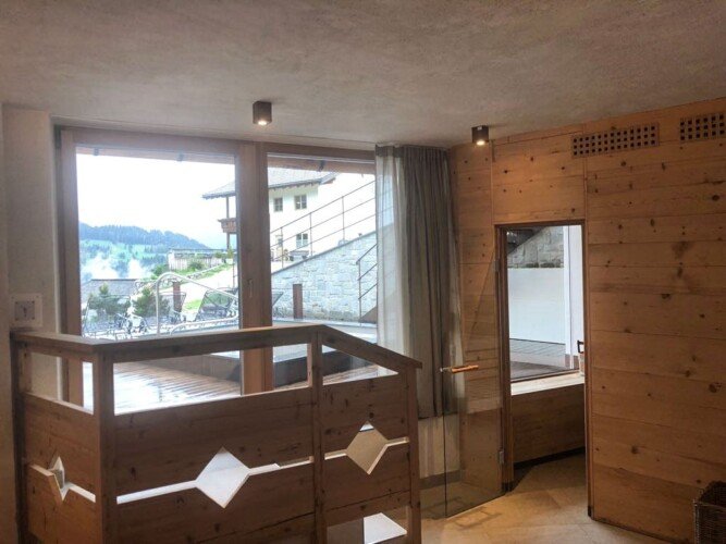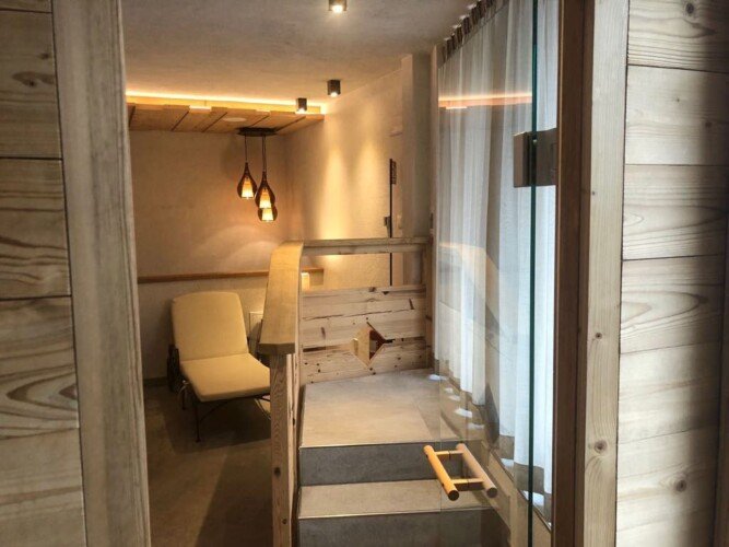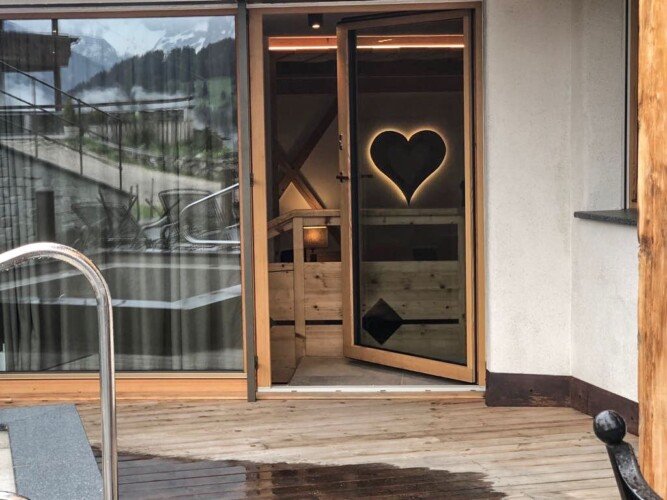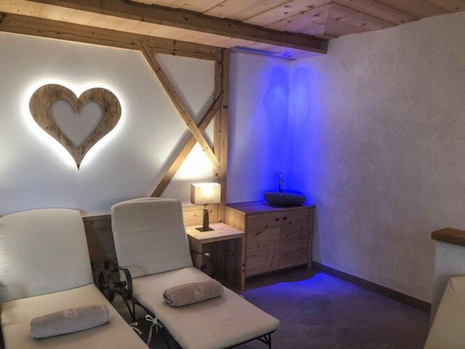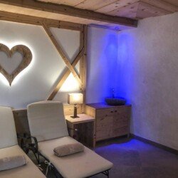 The chalet has its own wellness area with a luxurious relaxation room, steam room, dry sauna and outdoor hot tub with incredible mountain views.
