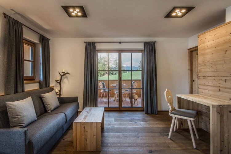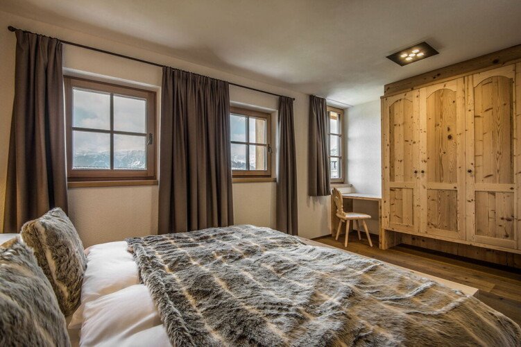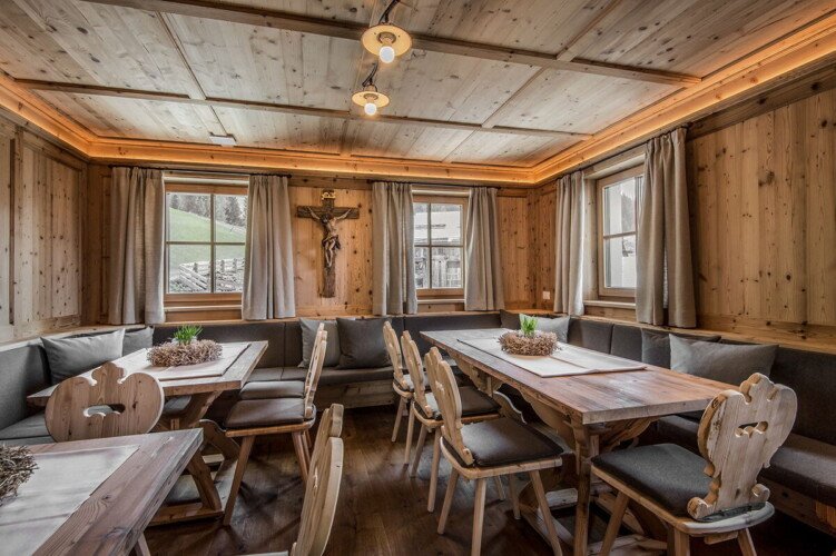 Set on a sunny hill and surrounded by farmland, the chalet offers a peaceful retreat in the heart of Val Badia. The chalet is just 3km from La Valle/Wengen and 10km from Plan de Corones and the entrance to Sellronda. There are some wonderful winter walks and cross-country skiing trails on the Putia or St. Cruz peaks. Although the chalet has been fitted with modern facilities and equipment, it has retained its truly authentic feel with plenty of wood and alpine elements.