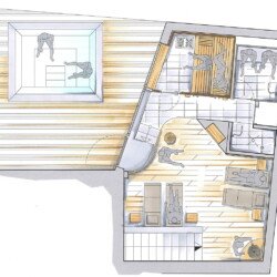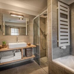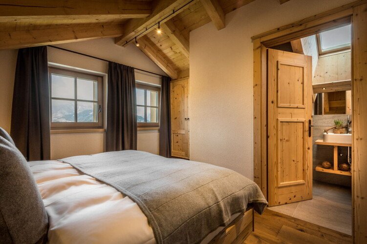 The chalet sleeps up to 15 guests in seven en-suite bedrooms. The master suite has a spacious seating area leading onto a balcony. There is a triple bedroom with a double bed and a single bed, ideal as a family suite. A further bedroom can be used as a twin or double.