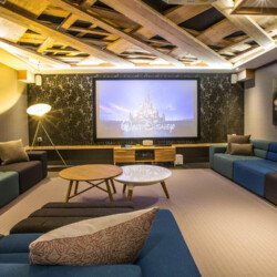The cinema room makes for the perfect den for kids to escape to they ve also provided a Playstation to help lure them in there!