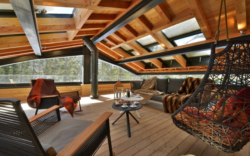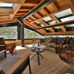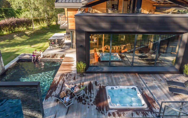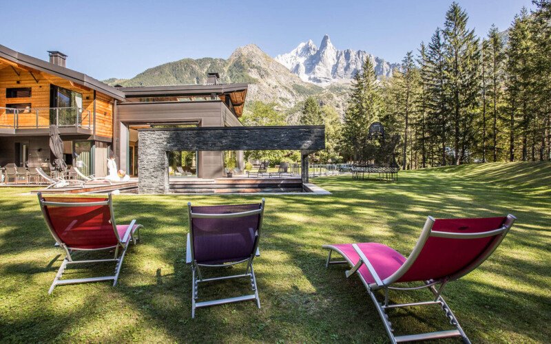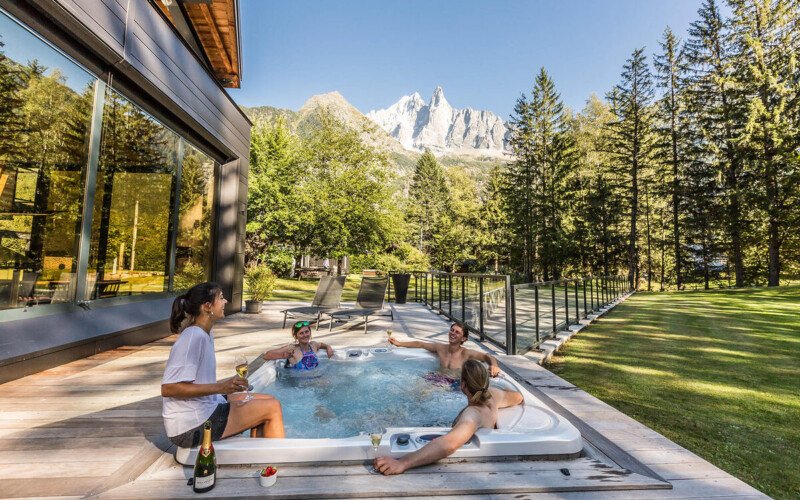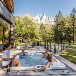 What s lovely about the chalet is that the same care and attention has gone into designing the outside spaces as those inside, which is just as it should be in a location such as this. Why have a view of Mont Blanc if you re not going to make the most of it? The spectacular roof terrace has amazing mountain views, and when you want to wind down at the end of the day, where better to do it than with a quick dip in the hot tub?