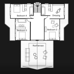 Bedroom 4-5: Double/twin bedrooms on ground floor with en-suite bathrooms and balconies.