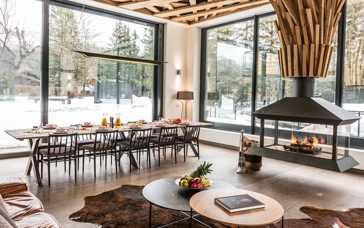 This ultra-modern luxury ski chalet couldn t be further away from the traditional antlers and cuckoo clocks French chalet style. From the laid-back cool of the living and dining space, with its amazing fire, to the pared-back mid-century chic bedrooms, the chalet has been designed to capture the imagination of style-conscious Chamonix types.
