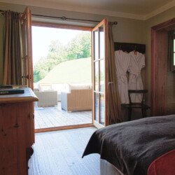 1 bedroom with box spring double bed and en-suite bathroom with shower.