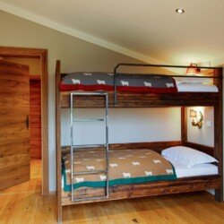 1 bedroom with bunk bed (sleeping 2) and shared bathroom with bathtub and shower.