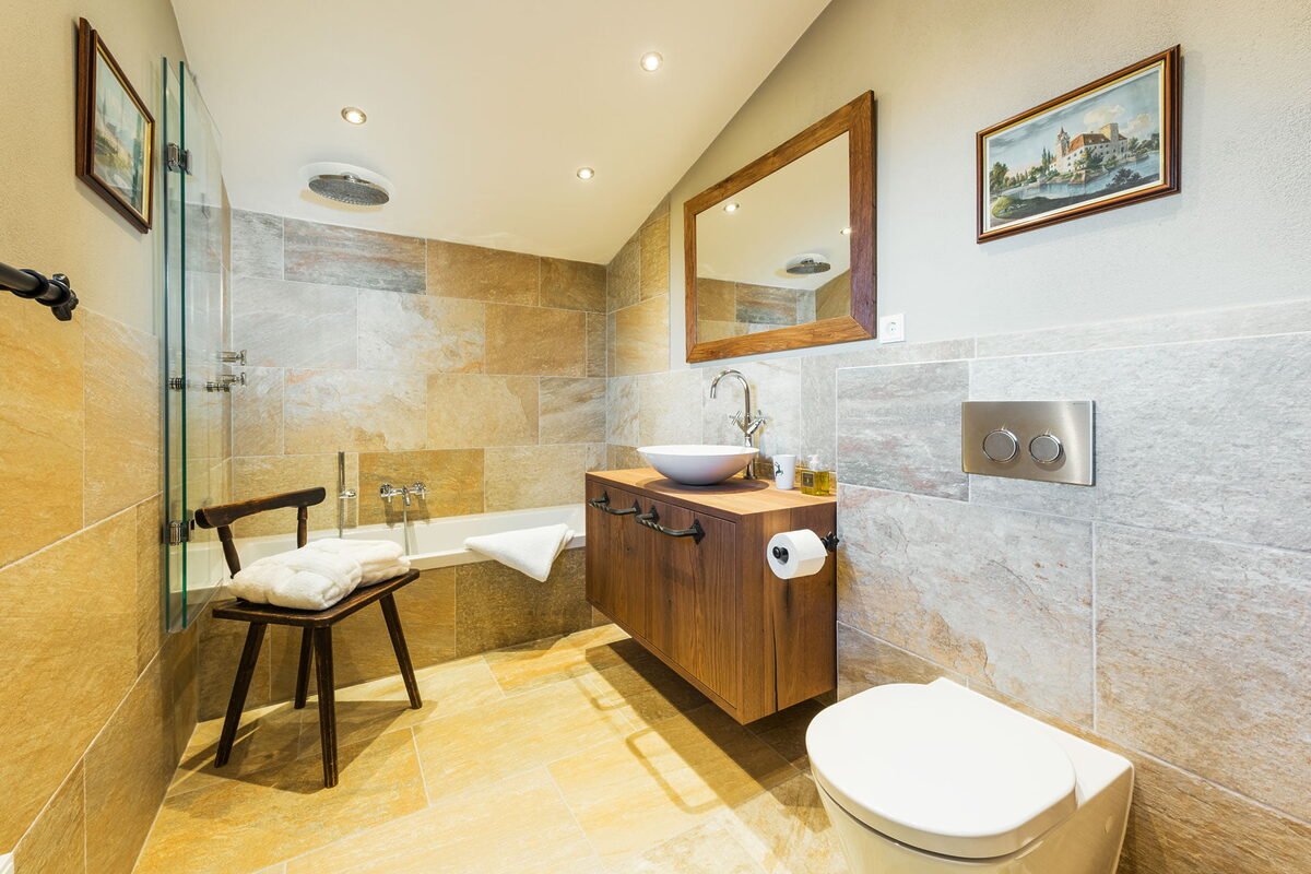 Your chalet has been completely refurbished in 2018, and we are now very happy to offer this cosy home for short and long term rentals. In the course of the refurbishment all windows as well as inner and outer doors have been replaced with matured timber and the whole house now offers floor heating beneath an oak wood floor. Additionally, all baths have been completely renovated, a new kitchen fitted, and all the furniture was modernized in combination with selected antiques, which is why your chalet holiday retreat now presents itself as one of the most beautiful of the chalets in an alpine character.