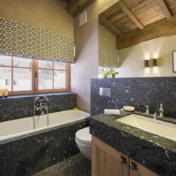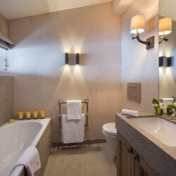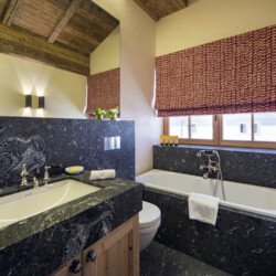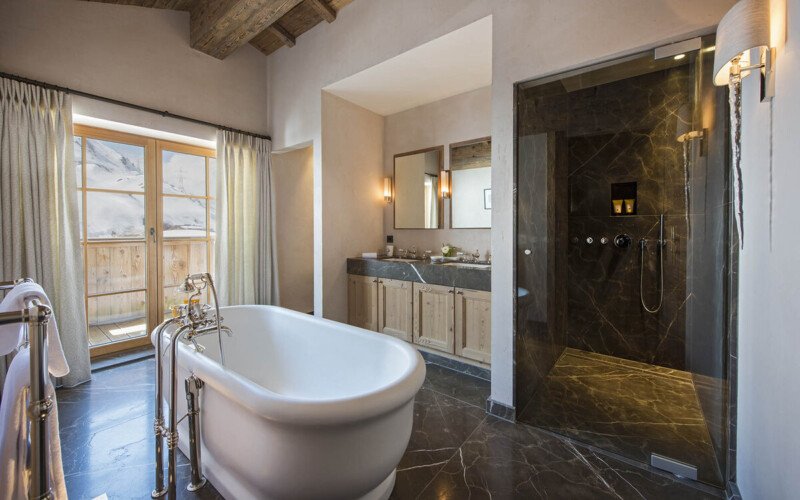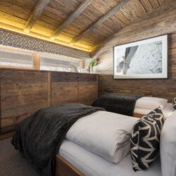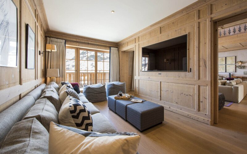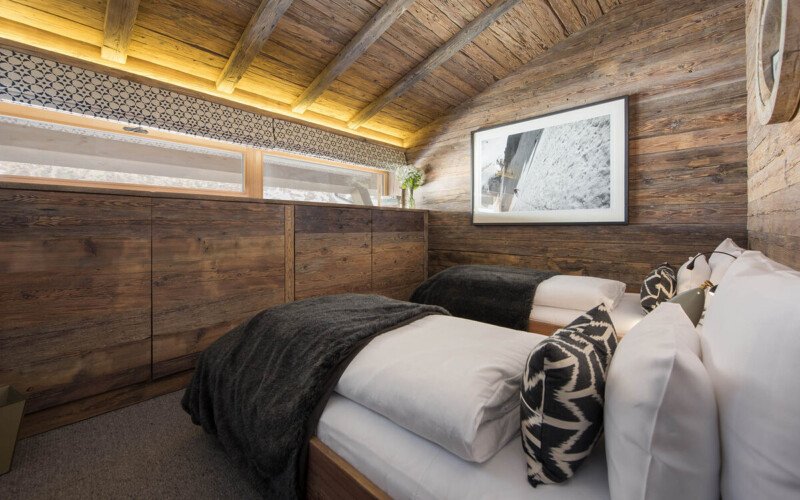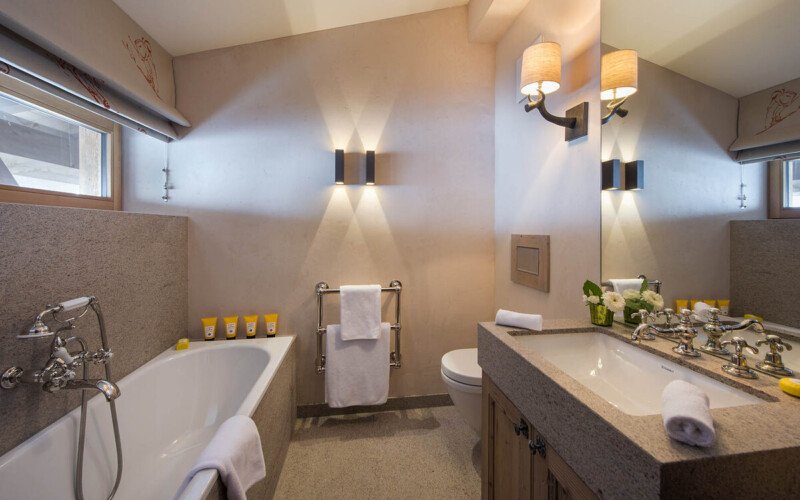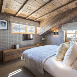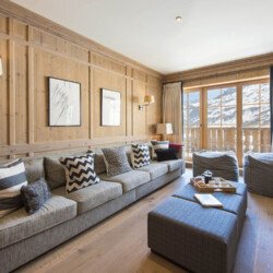 Upstairs, beautiful bedrooms in muted shades with throws and cushions piled high on oh-so-comfortable beds are a welcome retreat at the end of a tough day s skiing and socialising. As you d expect, bedrooms and bathrooms are all finished to five-star hotel standards, yet you can enjoy all the quiet and privacy that a private apartment has to offer.