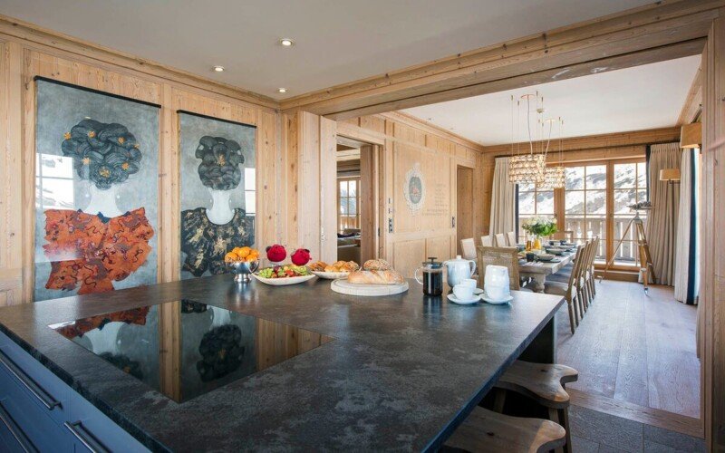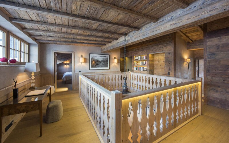 Uniquely set into the mountainside, the penthouse occupies the top two floors of this traditional building, so returning skiers can simply glide back to the property from the slope.