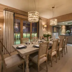 The living room is an open and sociable space, perfect for lounging in with friends and family. There is ample space for everyone to kick back in comfort. Next to this, a dining room with a long, refectory-style table creates the perfect setting for enjoying food and fun, fuelled by excellent house wines and innovative menus created by your private chef. There s also a spacious eat-in kitchen for less formal meals and an impressive cinema room where you can lose yourselves in a film.