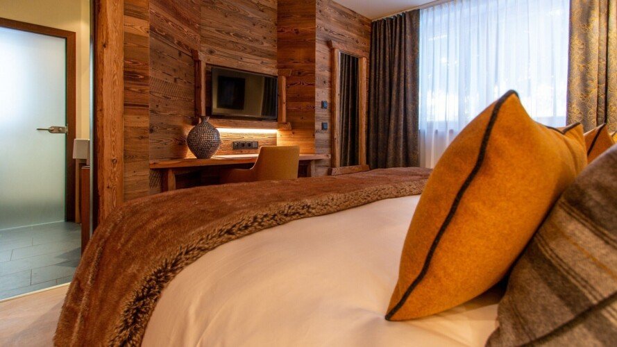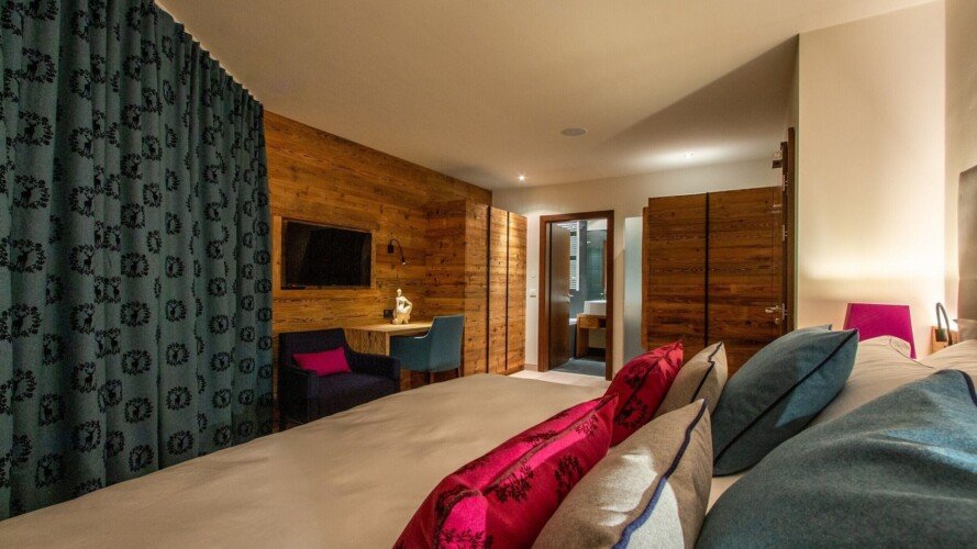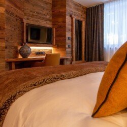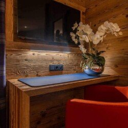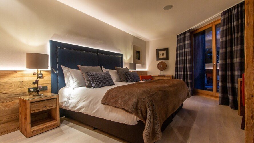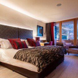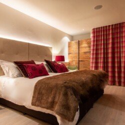 At ground level, alongside the boot room, the chalet boasts wonderful spa facilities, including an eight-metre swimming pool, wet room, sauna, steam room and an indoor hot tub. If you still have aching muscles after all that, there’s a treatment room so you can book massages or other treatments.