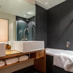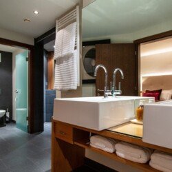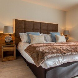 Sandwiched between the living space and the spa are two floors of bright, elegant bedrooms. Each of the six double rooms has a stylish en-suite bathroom and several enjoy a private balcony or terrace.
