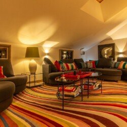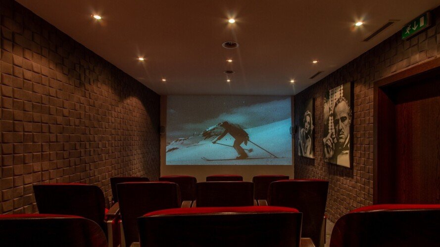 This lower level also boasts a private cinema room, complete with red velvet cinema seating.