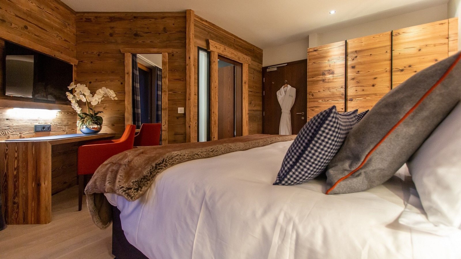 At ground level, alongside the boot room, the chalet boasts wonderful spa facilities, including an eight-metre swimming pool, wet room, sauna, steam room and an indoor hot tub. If you still have aching muscles after all that, there’s a treatment room so you can book massages or other treatments.