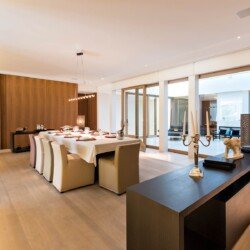 The Loft Penthouse St Moritz in St. Moritz offers a spacious apartment with four bedrooms and four bathrooms. The property features a fully equipped kitchen, dining area, and a comfortable living room with a fireplace.